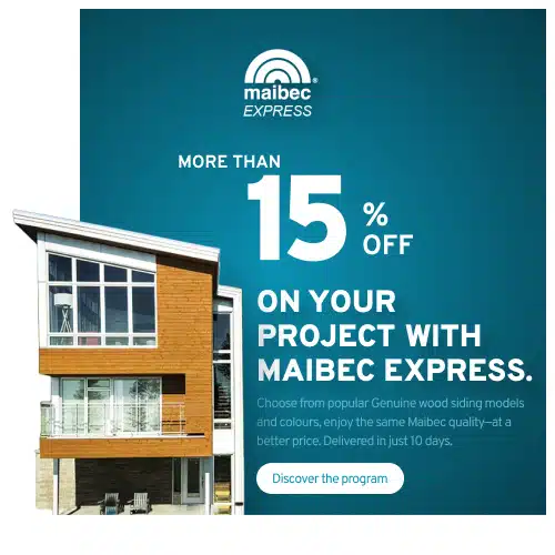 Optez pour le revêtement de cèdre rouge Maibec, un matériau noble reconnu pour sa beauté naturelle, sa stabilité dimensionnelle et sa durabilité exceptionnelle. Grâce à ses tanins intrinsèques, ce bois véritable résiste naturellement aux insectes et à la pourriture, tout en offrant une protection durable sans compromis sur l’esthétisme. Ses variations de teintes, allant du brun rouge profond à des nuances plus claires et dorées, confèrent au revêtement Maibec une richesse et une authenticité incomparables, rehaussant le caractère chaleureux et distinctif de tout projet architectural.