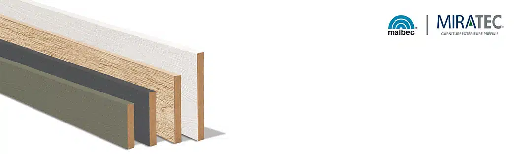 Conçues pour s’harmoniser parfaitement avec les couleurs et la texture du revêtement d’ingénierie Maibec CanExel, ces moulures s’adaptent également à d’autres types de revêtements. Fabriquées à l’aide de la technologie brevetée MiraTEC® et soigneusement préfinies par Maibec, elles allient esthétisme, durabilité et performance, tout en bénéficiant d’une garantie complète. Les moulures CanExel® combinent des fibres de bois durables, des résines phénoliques et du zinc borate, offrant une résistance accrue aux termites,à la pourriture et à la moisissure.